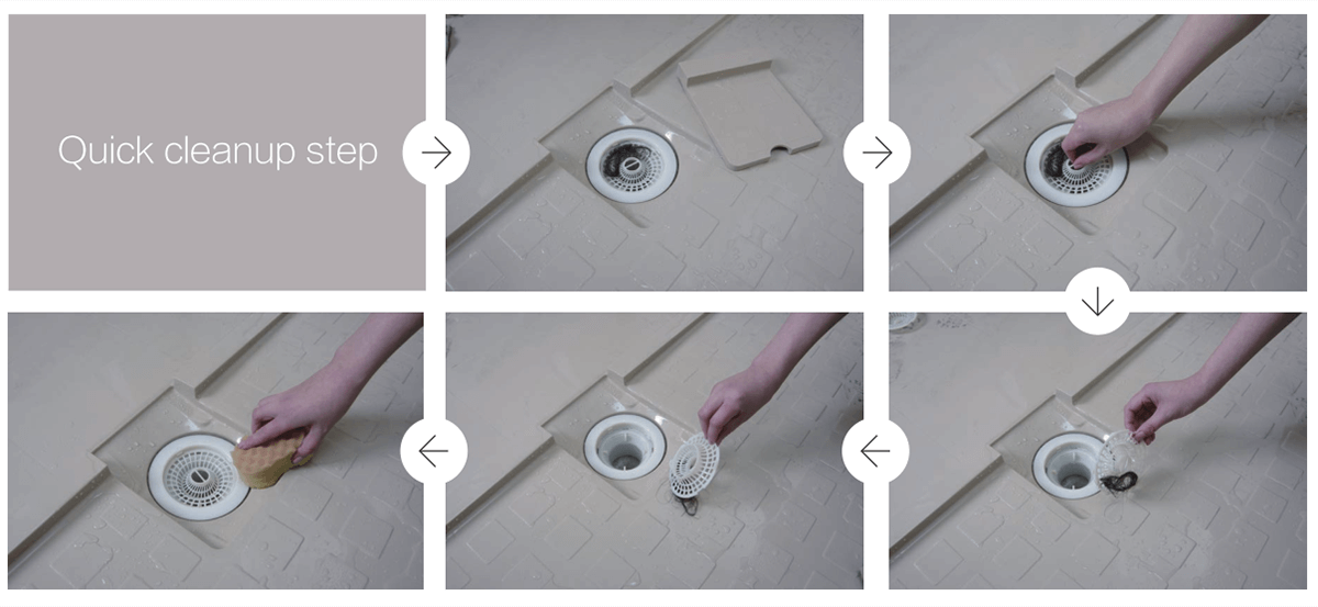 It’s detachable, and designed with a whirlpool type drainage structure. The triple filter can avoid hair clogging and facilitate cleaning.